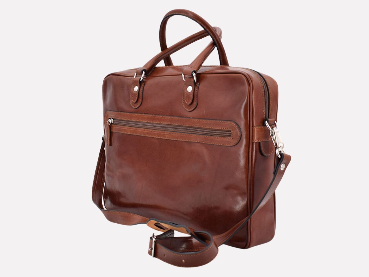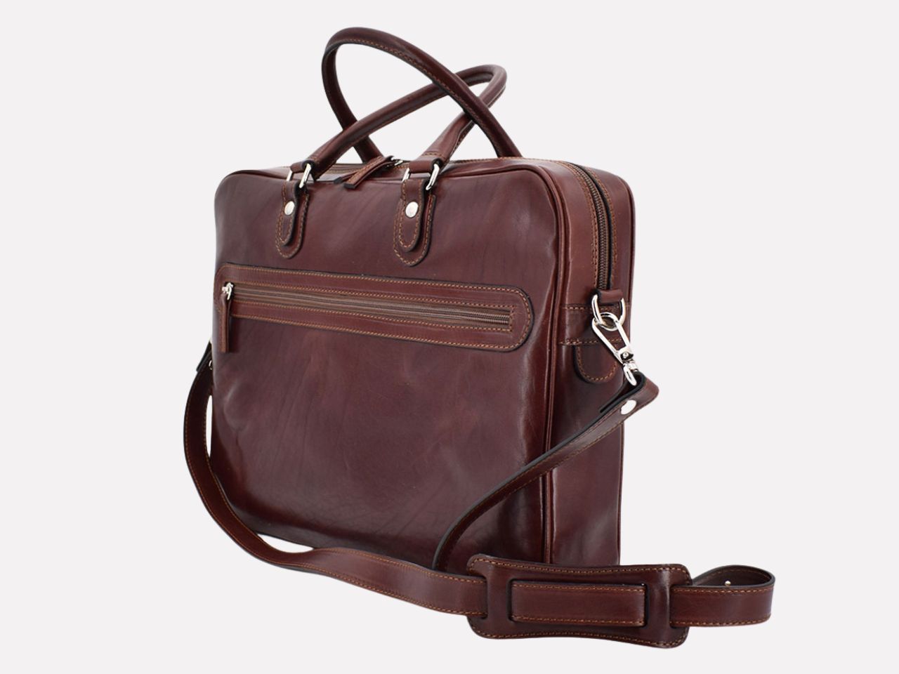 Fides, italian leather handmade briefcase with handles and shoulder strap, outside pocket with zipper, one compartment, inside pocket with zipper, leather lining.