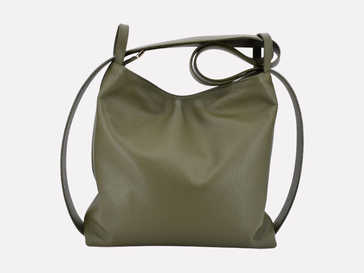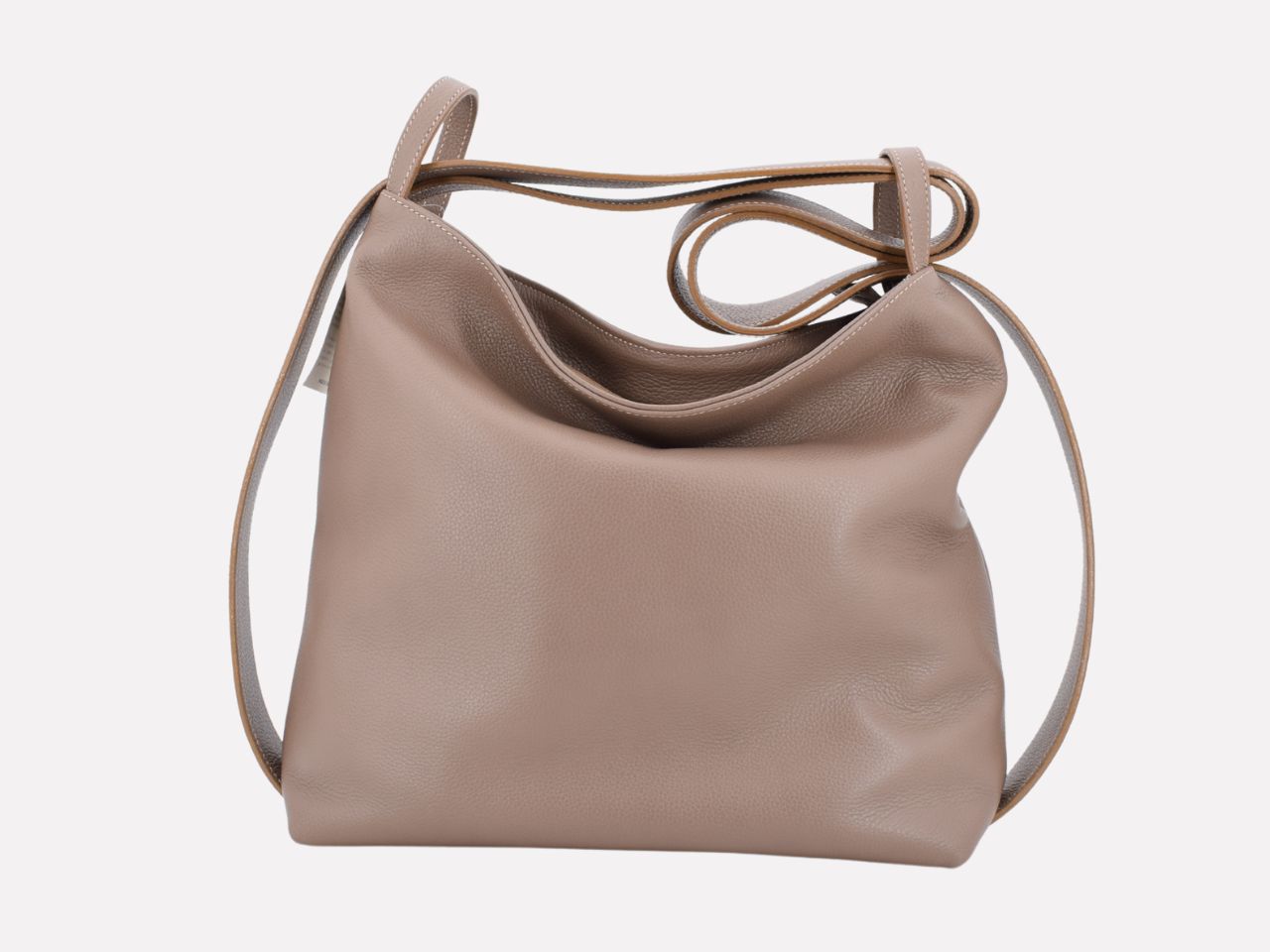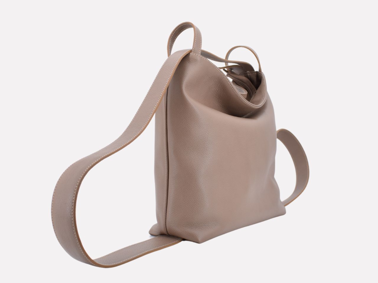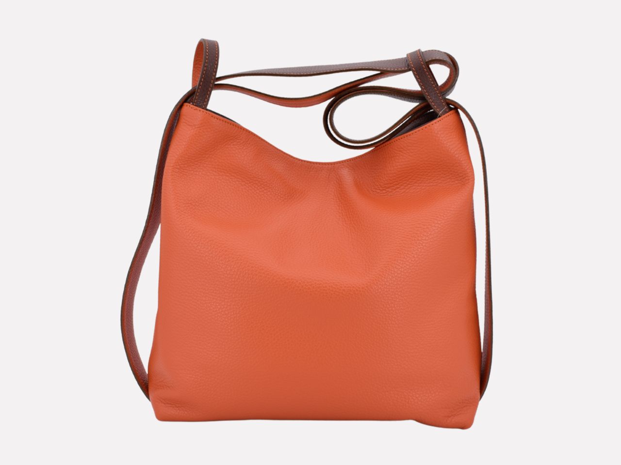 Italian leather shoulder bag with strap pullable on each side to turn it in a backpack, zipper closure, one inside pocket with zipper, inner lining. Carmenta is designed, made and crafted in Rome by Riccardo Mancini. Limited production, unique character.